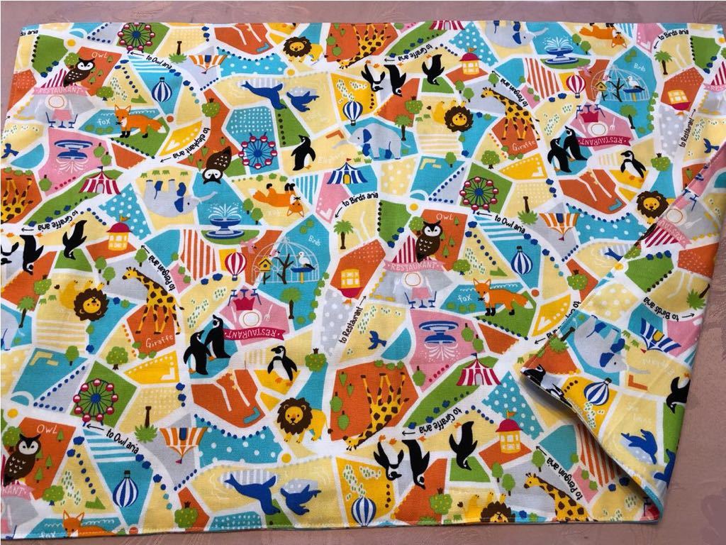> No.91 大判裏付ランチョンマット ハンドメイド 40x60 黄色アニマル柄