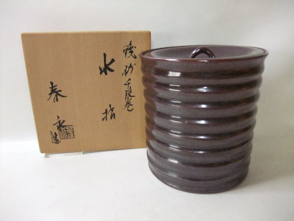 - 【睦】水差 鐵砂千段巻 加藤春永造 茶道具 京焼 清水焼 共箱■