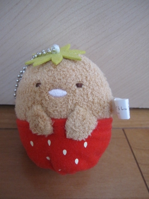 - 未使用■ すみっコぐらし とんかつ いちご マスコット ぬいぐるみ■苺 イチゴ■サンエックス