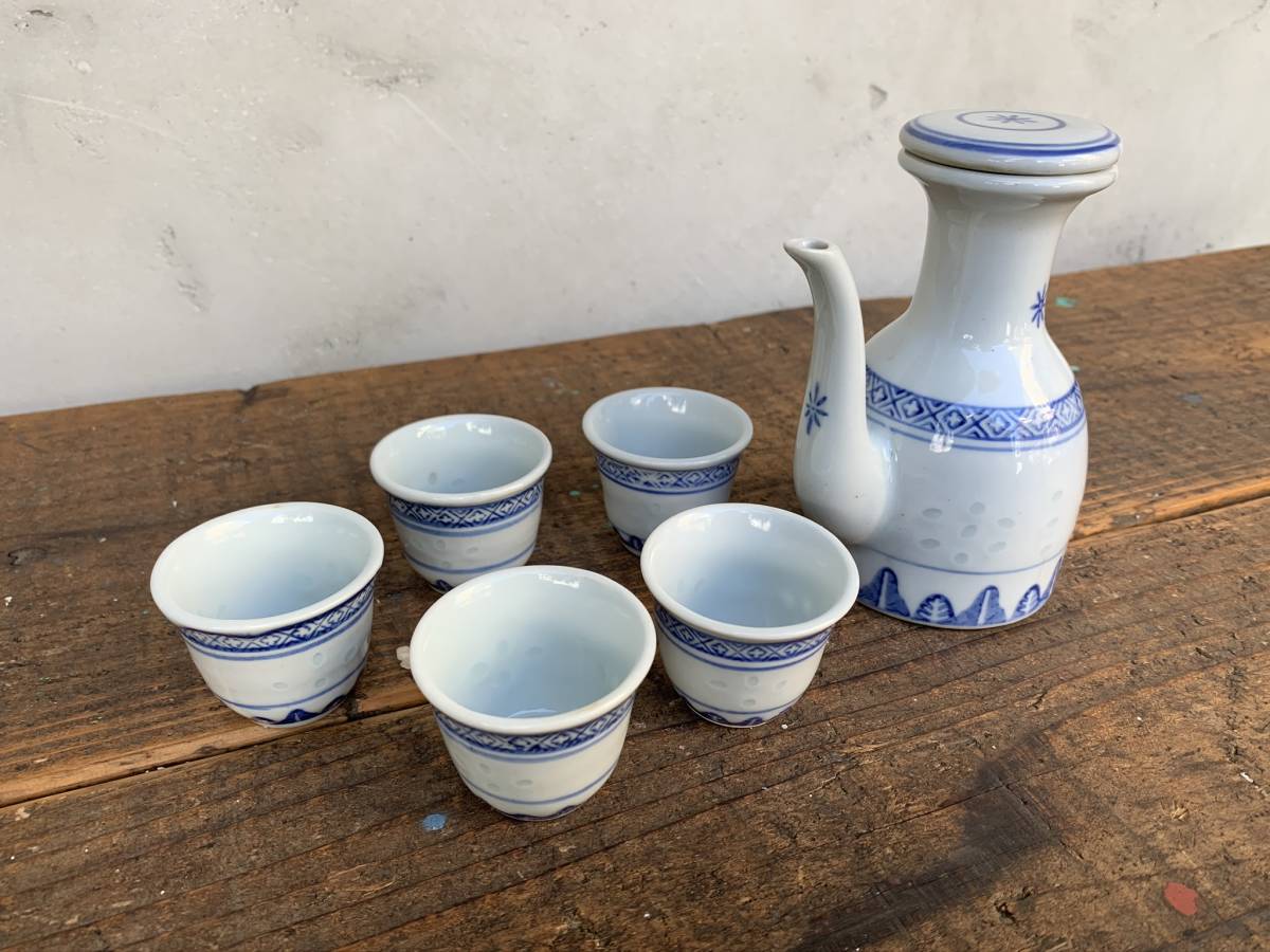 > ★未使用★中国★最高峰★陶磁器★景徳鎮★染付★茶器★酒器★水注★5客★煎茶碗★湯呑★茶杯★セット★陶芸★骨董★工芸★