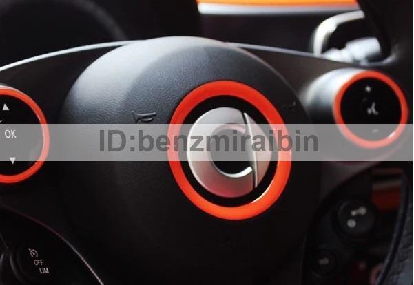 > スマート ベンツ SMART Fortwo car accessories 2015 2016 2017 2ドア ステアリング ハンドル リング デカール カバー 3枚 オレンジ