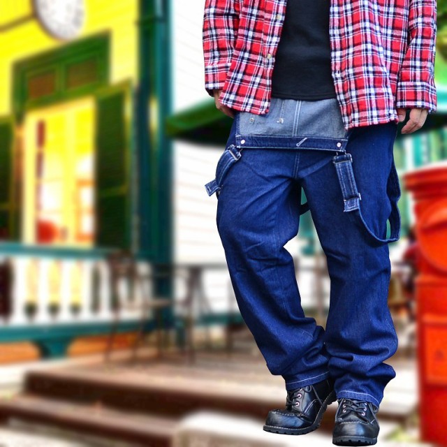 - デニムサロペット デニム素材オーバーオール 932l0404新品ネイビーM