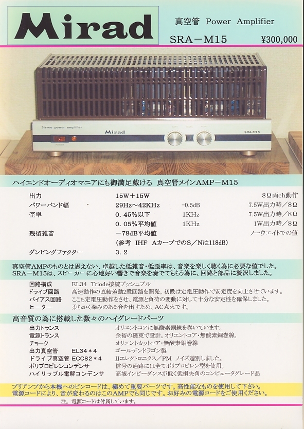 - MIRAD SRA-M15のカタログ ヤナギヤ電気 管0724