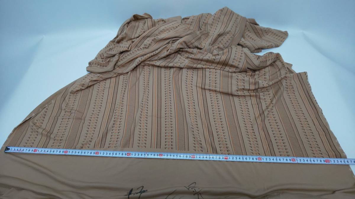 - 薄茶縞・余り布・幅105cm・長さ410cm・採寸外に記文字有「おかあさんのお針箱」00200072