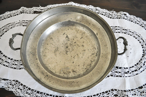 - ドイツ・1817年ピューター製持ち手付深皿 [4019]