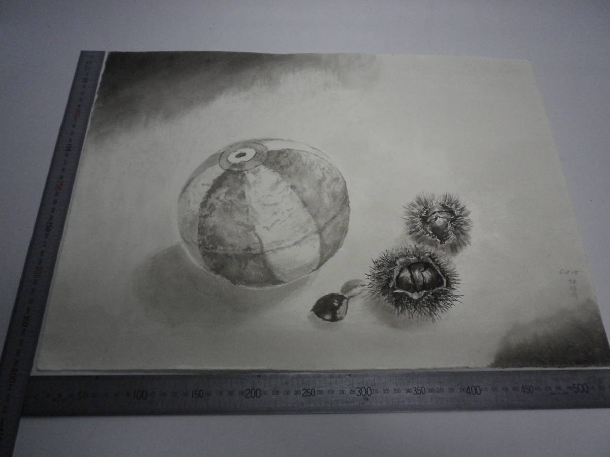 - 「栗・紙風船」水墨画【坂垣内 将泰】作者直筆原画「真作」P10号ハーネミューレ紙(経年保管品)【送料無料】00700223