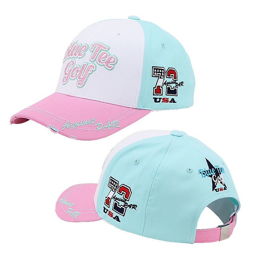 > ◆2-K-CAPブルーティーゴルフ 【Against Par 72】コットン ダメージキャップ【Bグリーン・ピンク】BLUE TEE GOLF 送料無料