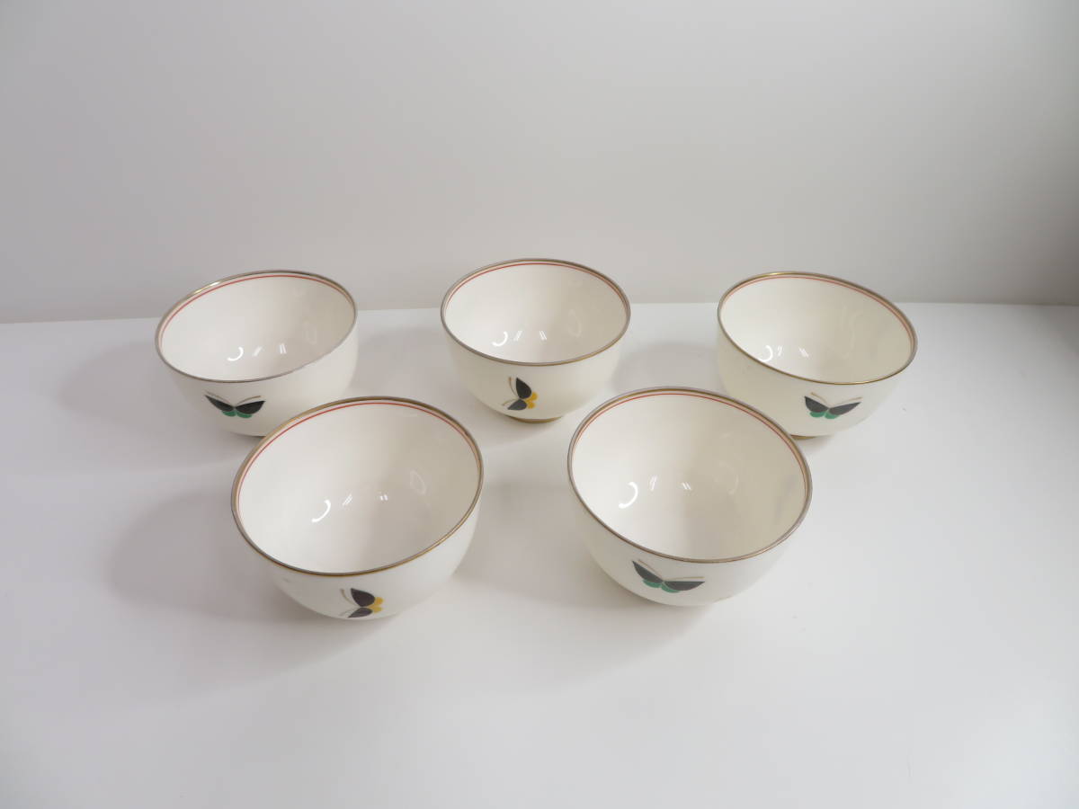 > 美品◆香蘭社 KORANSHA 蝶文御湯呑 湯呑み 5客セット 蝶々柄 金縁 金彩 銀彩 和食器 食器 茶器 管理2003 D-19