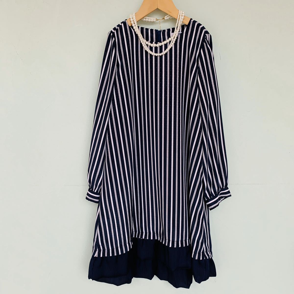 - 日本製 130cm ワンピース 入学式 入園式 発表会 ストライプ ネイビー フォーマル ブルーアズール 卒業式 卒園式 ドレス