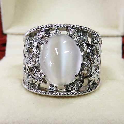 > 【値下げ交渉は質問欄より】【ポーラ】ラヴィドール☆4CTのキャッツアイムーンストーンと素敵デザイン指輪☆750製ピカピカ逸品リング