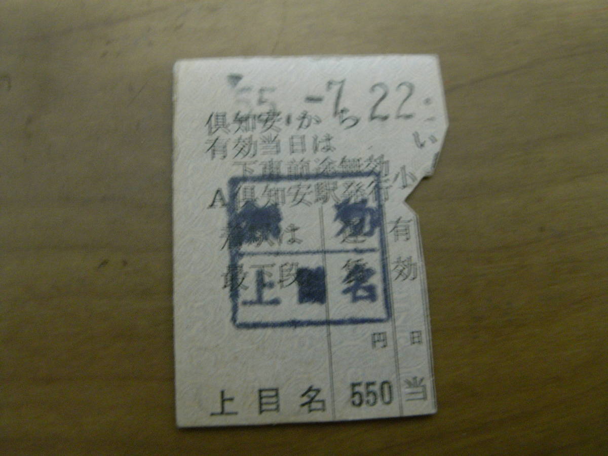 - 函館本線 倶知安から上目名ゆき 550円 昭和55年7月22日 倶知安駅発行