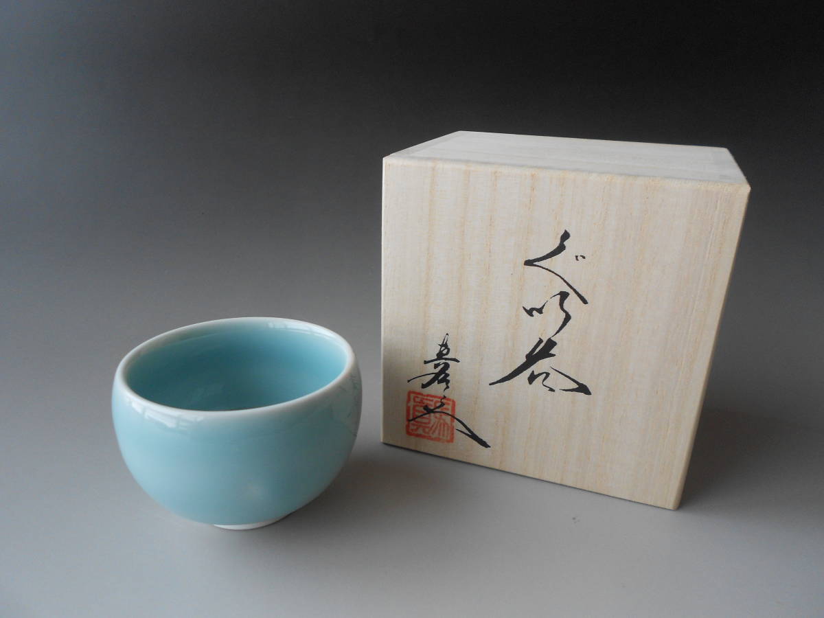 - 酒盃! 真右ェ門 ☆青磁ぐい呑☆ 新品 有田焼 酒杯 サカズキ 杯 お猪口 磁器 ギフト