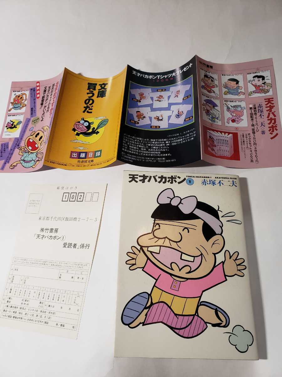 - 0777-2 菊67 美品 天才バカボン 1 赤塚不二夫 竹書房文庫 ハガキ、チラシ付き