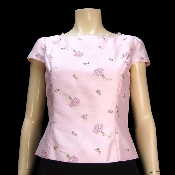 > N 美品★M'S GRACY エムズグレイシー★淡ピンク系*煌めくシルバーラメ入り*光沢シャンタン風生地*綺麗な半袖カットソー★38(M*9号相当)