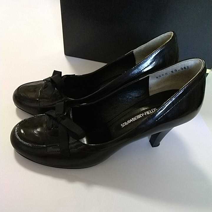 - ☆ストロベリーフィールズ 黒 エナメルリボンパンプス 23㎝ 上品☆