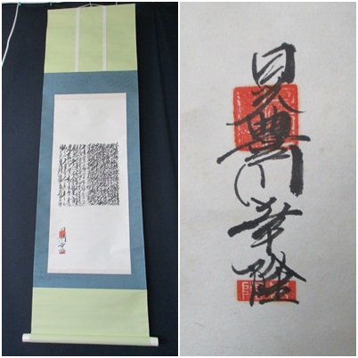 - ★掛軸 書 変わっています 全体にシミあり サイズ*縦148cm 横43cm あゆ-108