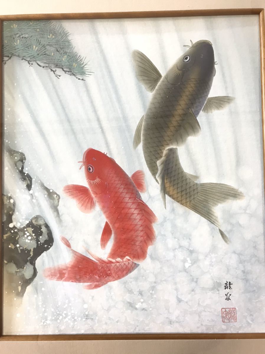 - 真作 新品 額装付 仲田龍安 夫婦鯉