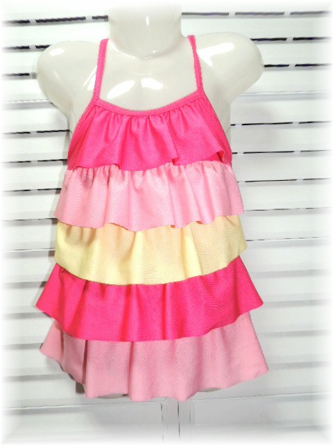 - ティヤードフリル バッククロス ワンピース水着 サイズ90 ピンク系