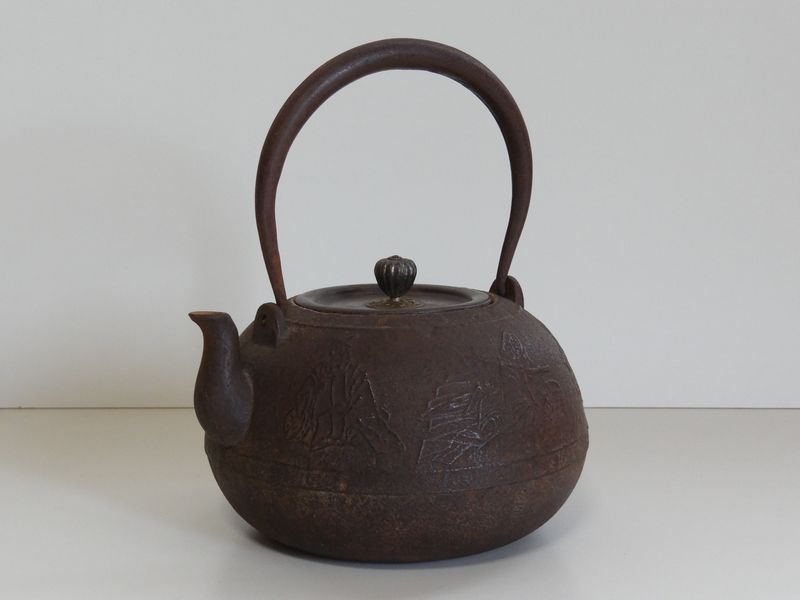 - 鉄瓶 平安貴族人物図 真鍮菊摘み 茶道具