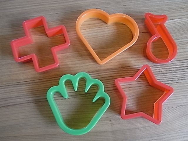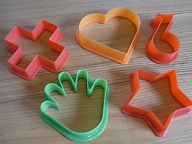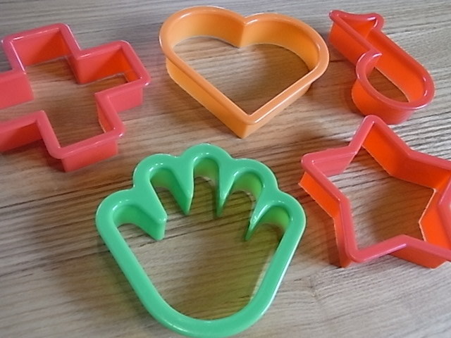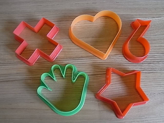 - ハート・手のひらなどの形 クッキー型5個 プラスチック 手作りお菓子 スィーツ