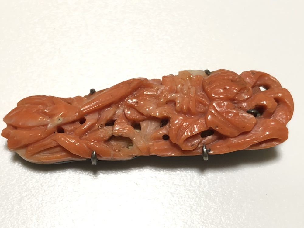 - アンティーク 本珊瑚 6.6g ハイビスカス細工 帯留め【検/さんご/サンゴ】