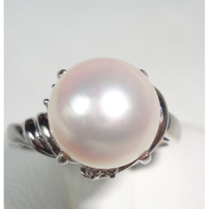 - 送料無料 pt900パール極小ダイヤ6石0.06ctリング used 質屋出品