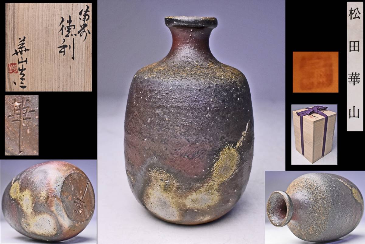 > 松田華山 ★ 備前徳利 ★ 共箱 共布 栞 ★ 肩衝徳利 ★ 造形良く桟切りの景色に味わいのある逸品 ★