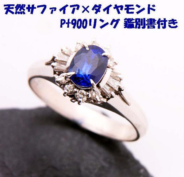 > ★☆見て!Pt900プラチナ1.00Ctサファイア×0.24Ctダイヤリング指輪12.5号鑑別書付!MJ-106