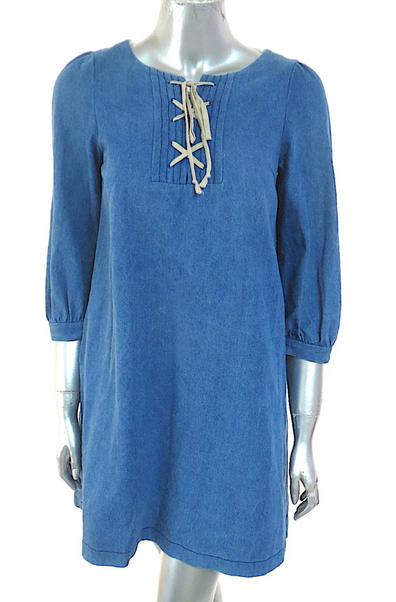 > 二点落札で送料無料! 2A22 Bon mercerie ボン メルスリー ワンピース デニム 長袖 38 コットン ひざ丈 インディゴ ブルー アナトリエ