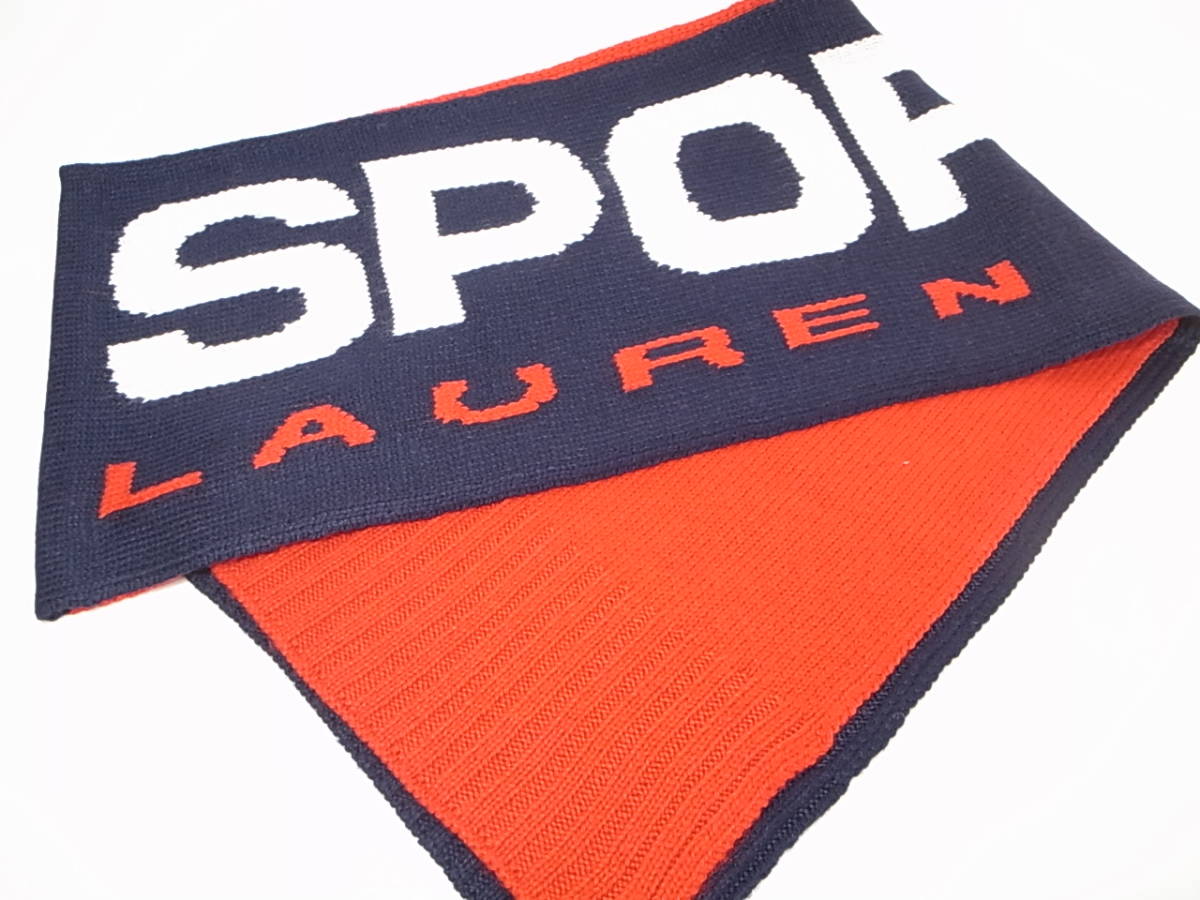 > 【送料無料 即決】POLO SPORT RALPH LAUREN カラーブロック マフラー183cm x 25.5cm ニットスカーフ KNIT SCARF ネイビーxレッド紺x赤 新品