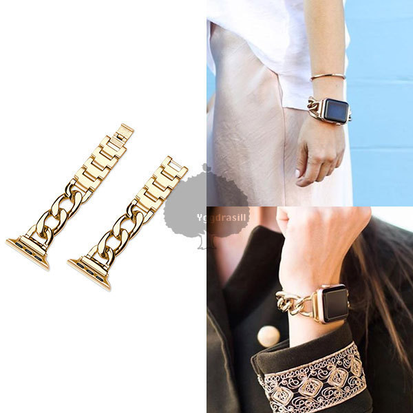 > アップルウォッチ ステンレス マット チェーン バンド ベルト 42mm 44mm 45mm 49mm ゴールド 金 レディース メンズ SE ウルトラ 対応!