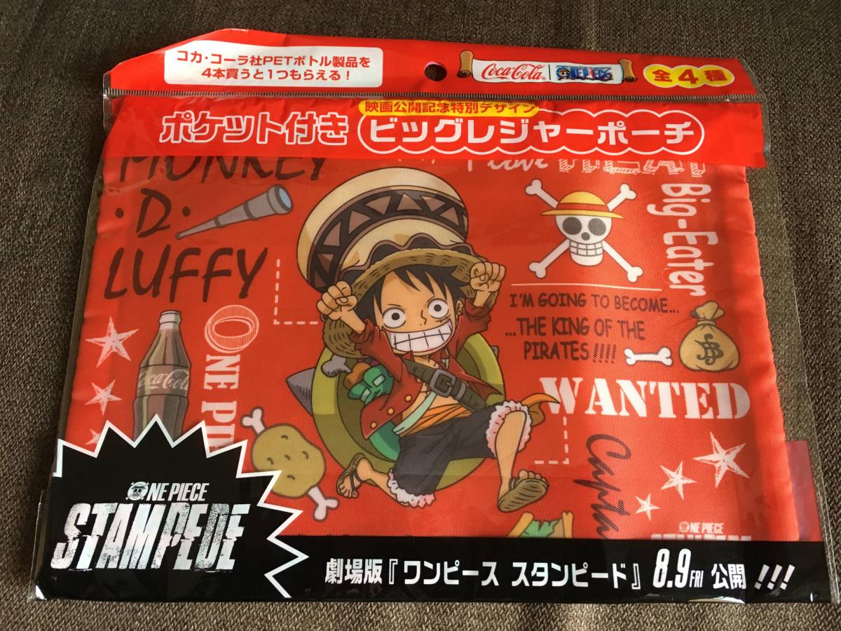 > ★未使用 未開封 コカ・コーラ ワンピース ビッグ レジャー ポーチ ポケット付き 赤 非売品 劇場版 ONE PIECE STAMPEDE