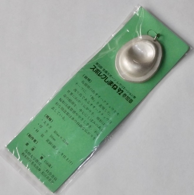 > 古い ペンダント トップ 倉沢實 スポレクしまね'92 参加賞 オオハクチョウ 鳥取県 黄銅 銀メッキ 美術 オブジェ