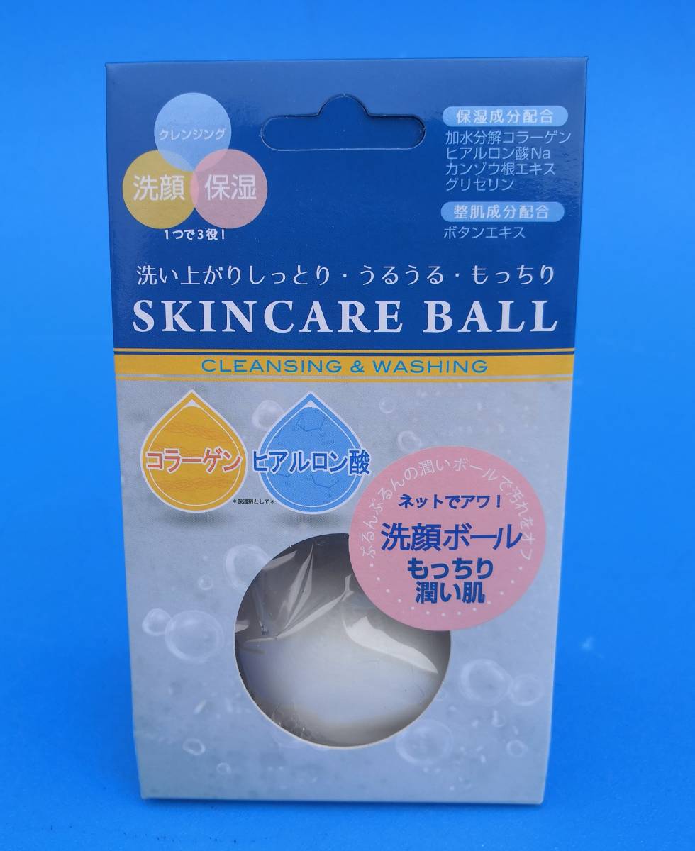 ・スキンケアボールを手に取り、水で濡らして両手でもむようにして泡立て、顔をやさしくマッサージするように洗ってください。