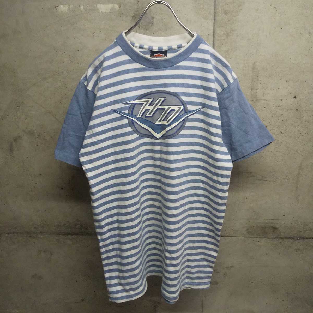 > レア 90s ハーレーダビッドソン Tシャツ ボーダー シングルステッチ 古着 vintage ヴィンテージ ビンテージ HARLEY DAVIDSON アメカジ