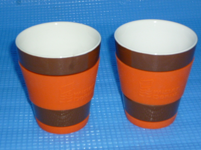 > a★未使用・非売品★Mister Donutミスタードーナツ カラフルタンブラー2個セット(ブラウン×オレンジ)