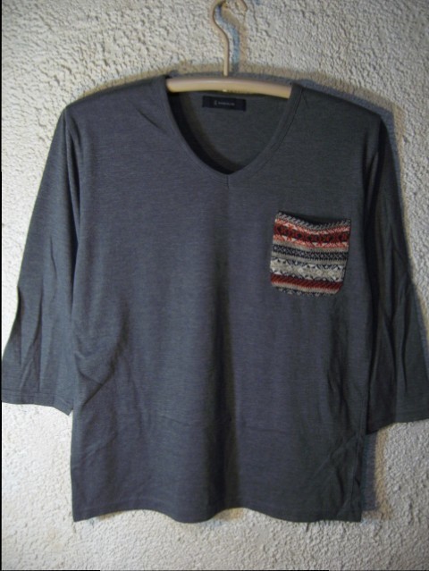 > n1205 レイジブルー RAGEBLUE 美品 七分 Vネック 民族風ポケット tシャツ 人気 送料格安