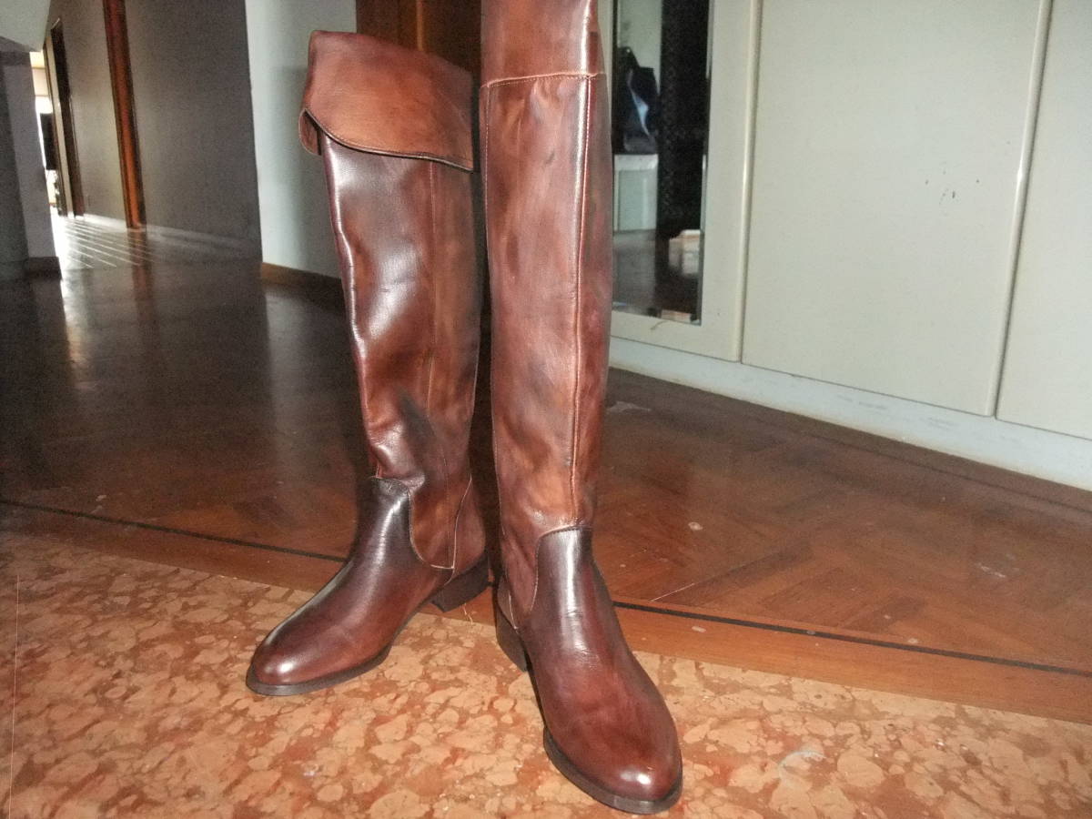 - イタリア製 CALZ.SAVIO 本革レザーロングブーツ 未使用品