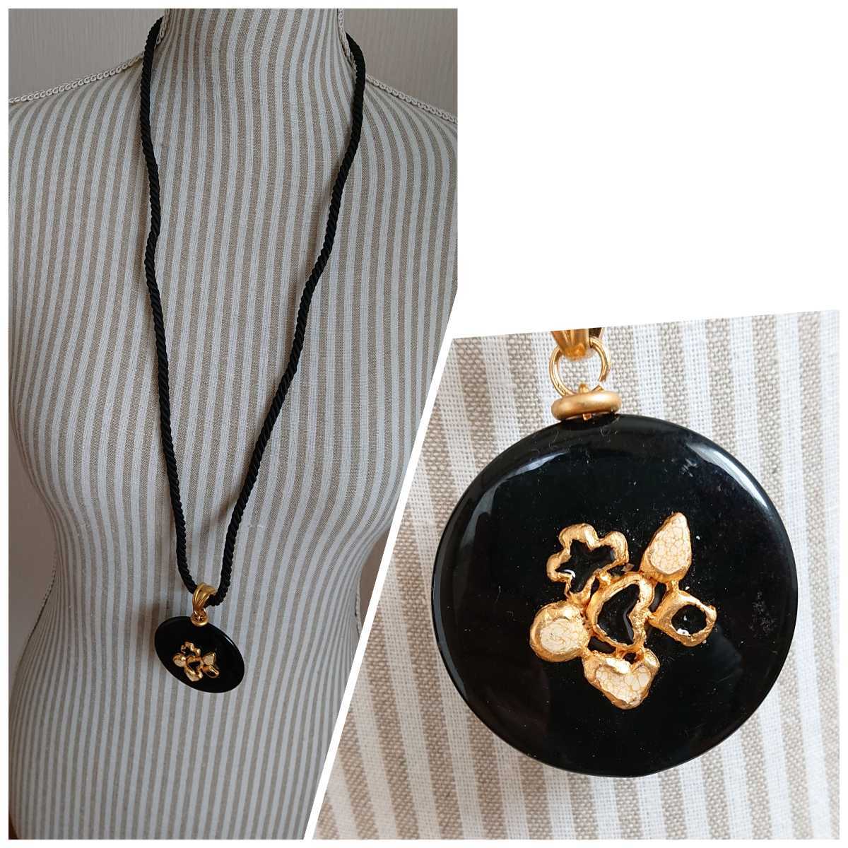 - □イタリア製□シック・クラッシックな印象□黒×ゴールドカラー□大きなサークルプレート×ブラックロープのペンダント□