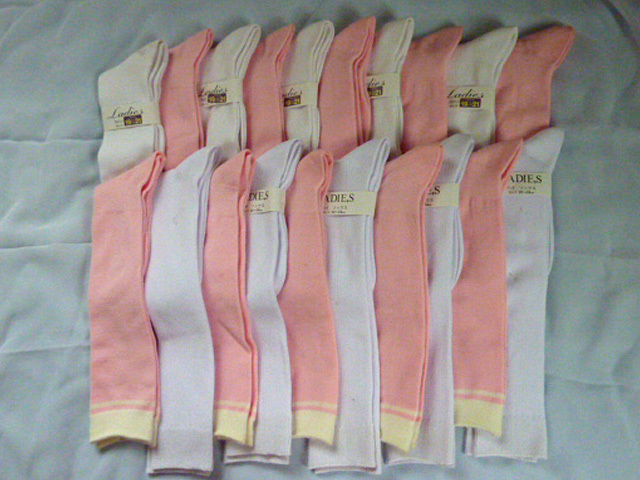 - ★新品未使用 20足 日本製 Ladies カジュアルハイソックス ピンク&ホワイト★1128