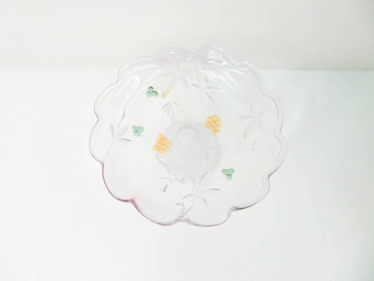 > 未使用品◆ケーキスタンド ケーキ台 ケーキ皿 ブドウ柄 木の身柄 花形 ガラス 食器 洋食器 管理2011 Z-1