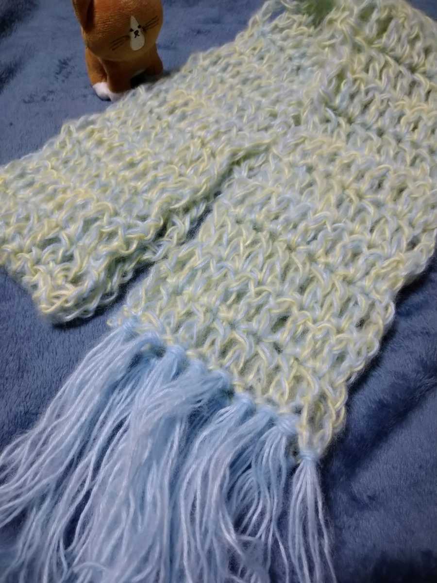 - ミックスカラー☆水色×黄色☆キッズモヘアマフラー新品