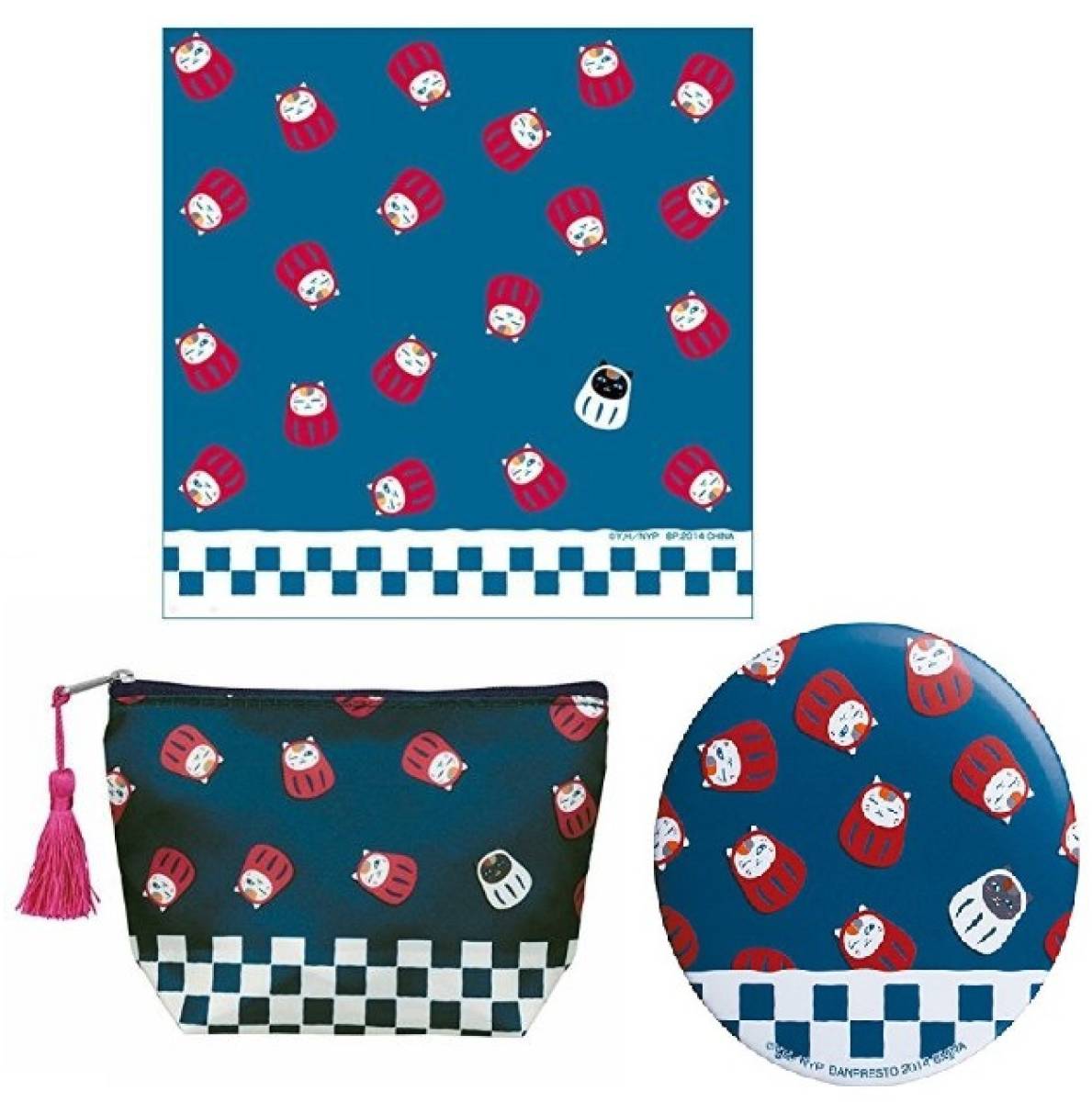 - 513◇ダルマ風ニャンコ先生 3種セット ハンカチ ミラー ポーチ 一番くじ 夏目友人帳 開店 あやかし雑貨店 和小物 ニャンコ先生 希少 ねこ