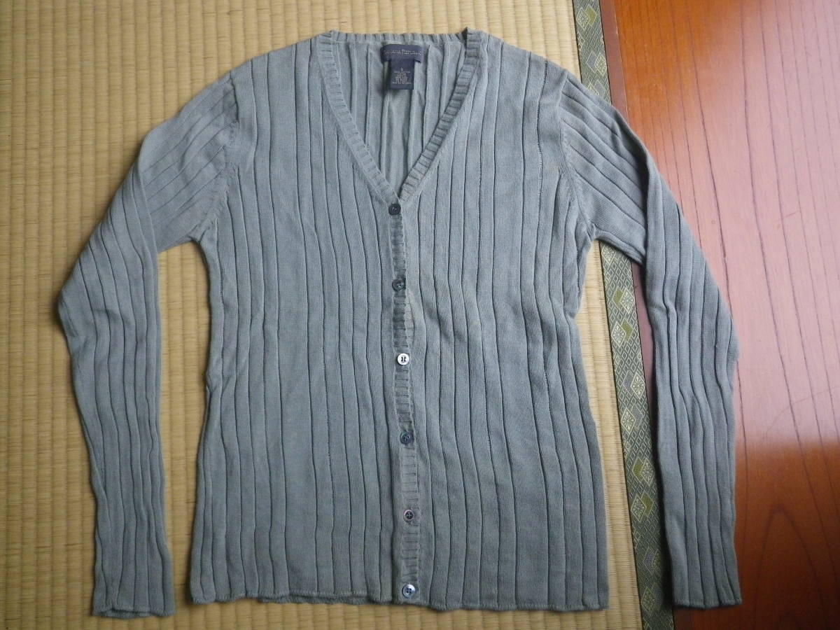 > 05【中古美品】*BANANA REPUBLIC バナナリパブリック 長袖カーディガン 綿100% モスグリーン系 送料無料