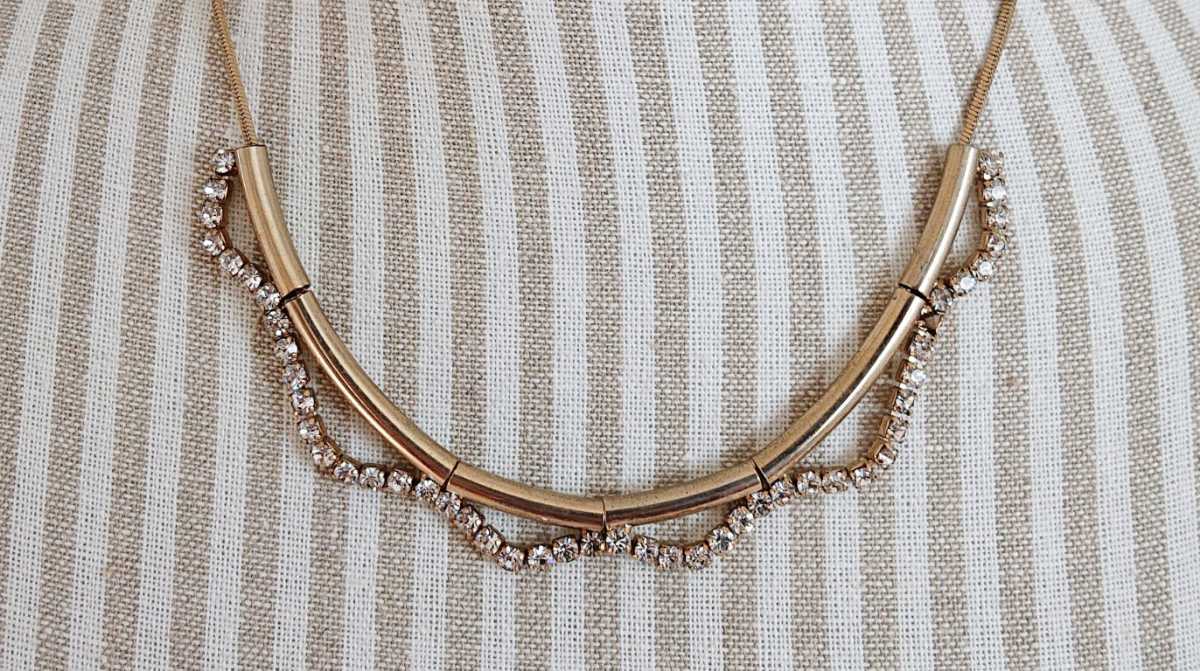- □ゴージャス&エレガント□R.P□09007刻印□ゴ―ルドカラ―×ラインストーンのボートライン・ネックレス□スネークチェーン□