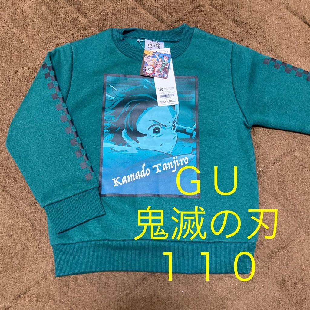 > レア 即決 新品 GU 鬼滅の刃 コラボ 竈門炭治郎110サイズ スウェット トレーナー キッズ 子供 長袖 炭治郎 鬼滅 110 緑 グリーン Tシャツ