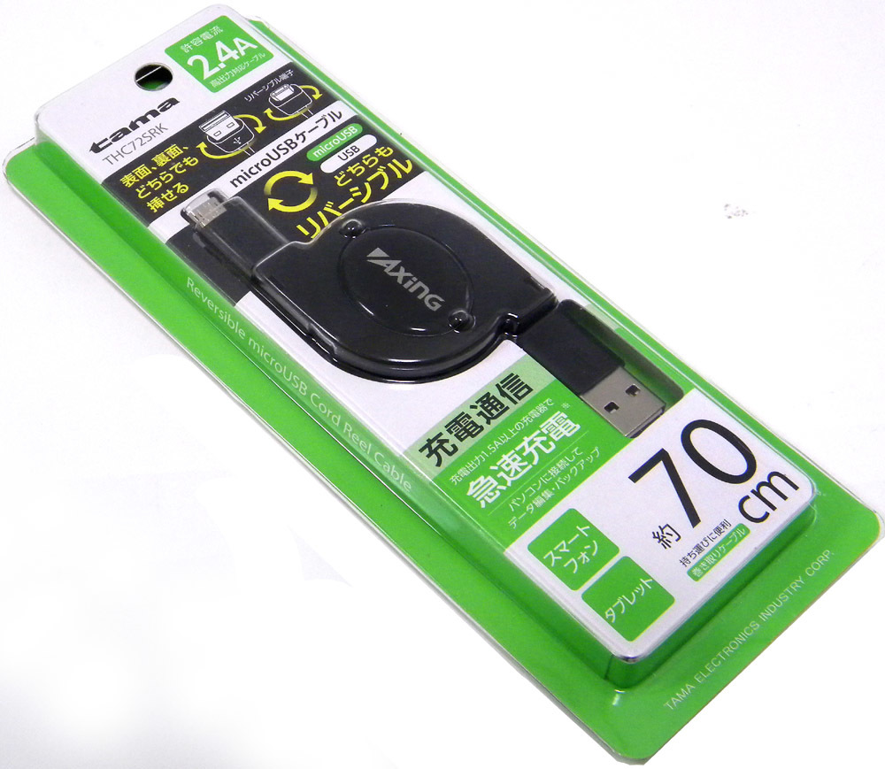- ★ 多摩電子工業 microUSB / USB [巻取りケーブル 70cm] 2.4A 急速充電 充電通信
