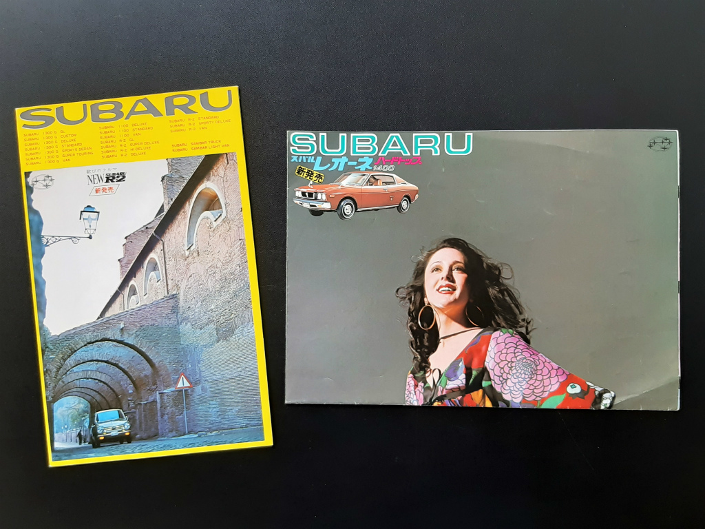 - スバル 1300 R2 サンバー レオーネ レックス 富士重工業 ラインナップ 製品案内 当時品 2点セット!☆ 鰐淵晴子 国産車 絶版 旧車カタログ