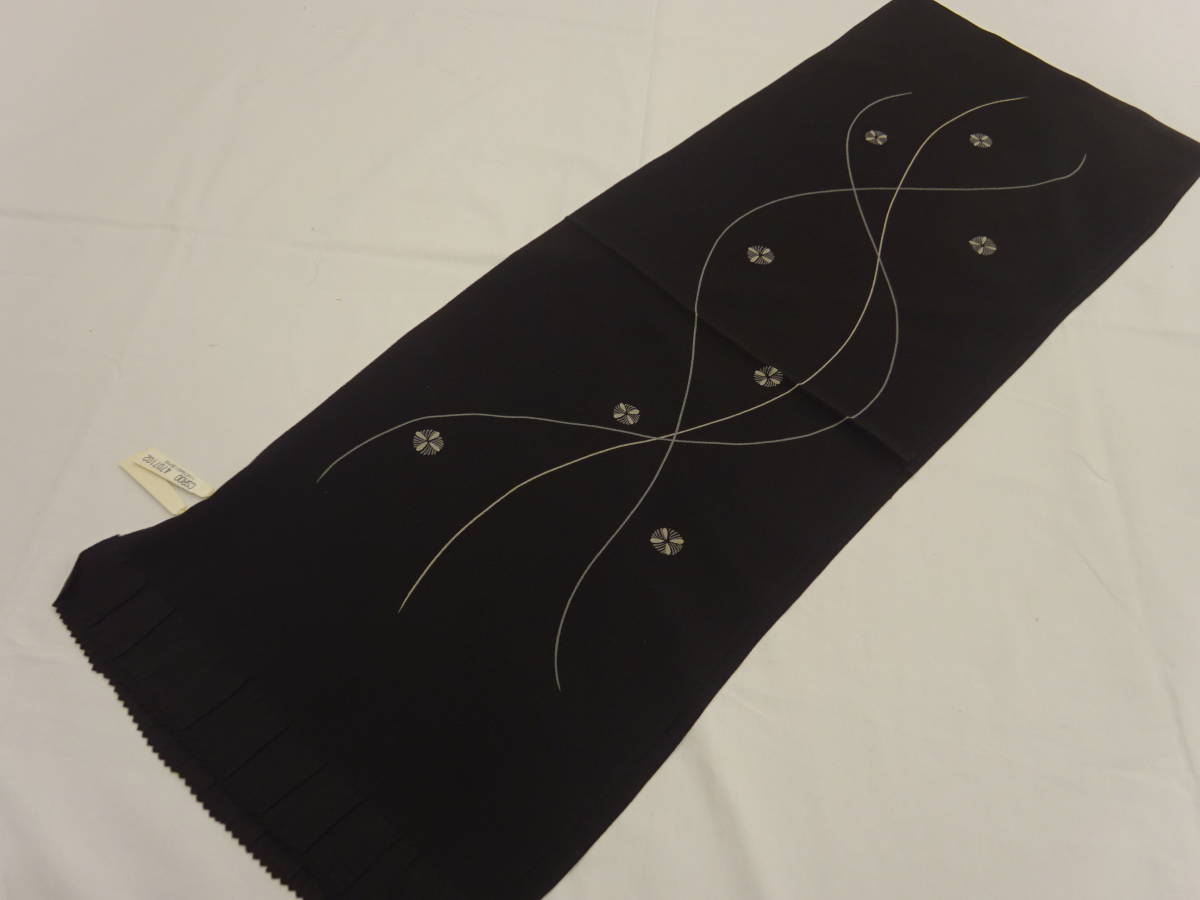 - 新品・未使用★正絹・帯揚げ★黒地にライン柄です
