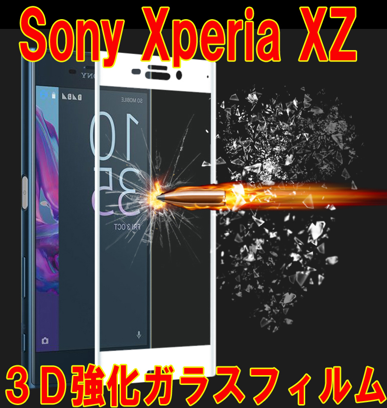 > 白 Sony Xperia XZ ガラス フィルム SO-01J SOV34 601SO 曲面 エックスペリア 画面 保護 カバー シール シート Glass Film 9H スクリーン